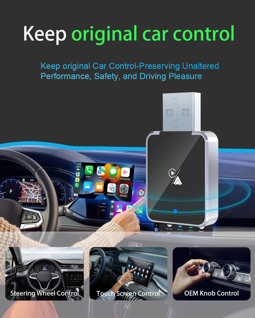 Η συσκευή απλώς μετατρέπει τον τρόπο σύνδεσης — διατηρεί τις αρχικές λειτουργίες του συστήματος infotainment χωρίς τροποποιήσεις στο σύστημα του αυτοκινήτου.