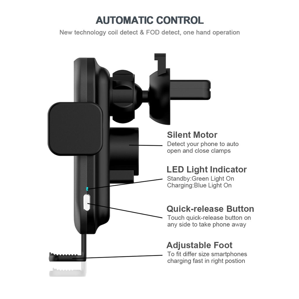 Έξυπνη βάση αυτοκινήτου που συνδυάζει αυτόματη στήριξη τηλεφώνου, σταθερή ασύρματη φόρτιση και πλήρως ρυθμιζόμενη κατασκευή. Σχεδιασμένη για καταστάσεις όπου το τηλέφωνο λειτουργεί στο έπακρο – πλοήγηση, κλήσεις, μουσική – ενώ παραμένει ασφαλώς στερεωμένο και φορτίζεται συνεχώς.