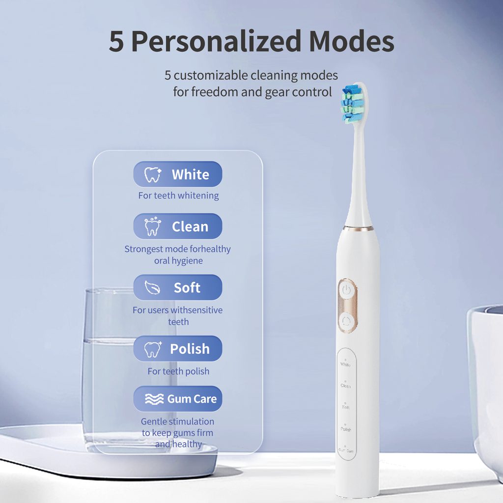 Ηλεκτρική οδοντόβουρτσα Sonic με σετ 8 κεφαλών, 42.000 δονήσεις/λεπτό, 5 λειτουργίες, λευκή