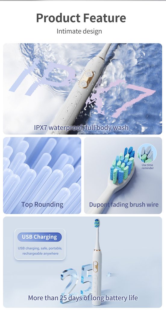 Πλήρως πλενόμενο σώμα οδοντόβουρτσας. Μπορεί να χρησιμοποιηθεί ακόμη και στο ντους χωρίς ανησυχία.