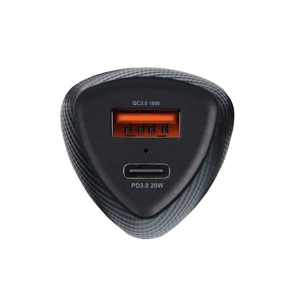 Εξαιρετικά λειτουργικός φορτιστής αυτοκινήτου από τη σειρά FORCELL CARBON. Εξοπλισμένος με δύο θύρες φόρτισης: USB-C και USB. Υποστηρίζει πρωτόκολλα γρήγορης φόρτισης QC 3.0 και PD 3.0 και διαθέτει πολυεπίπεδο σύστημα ασφαλείας.