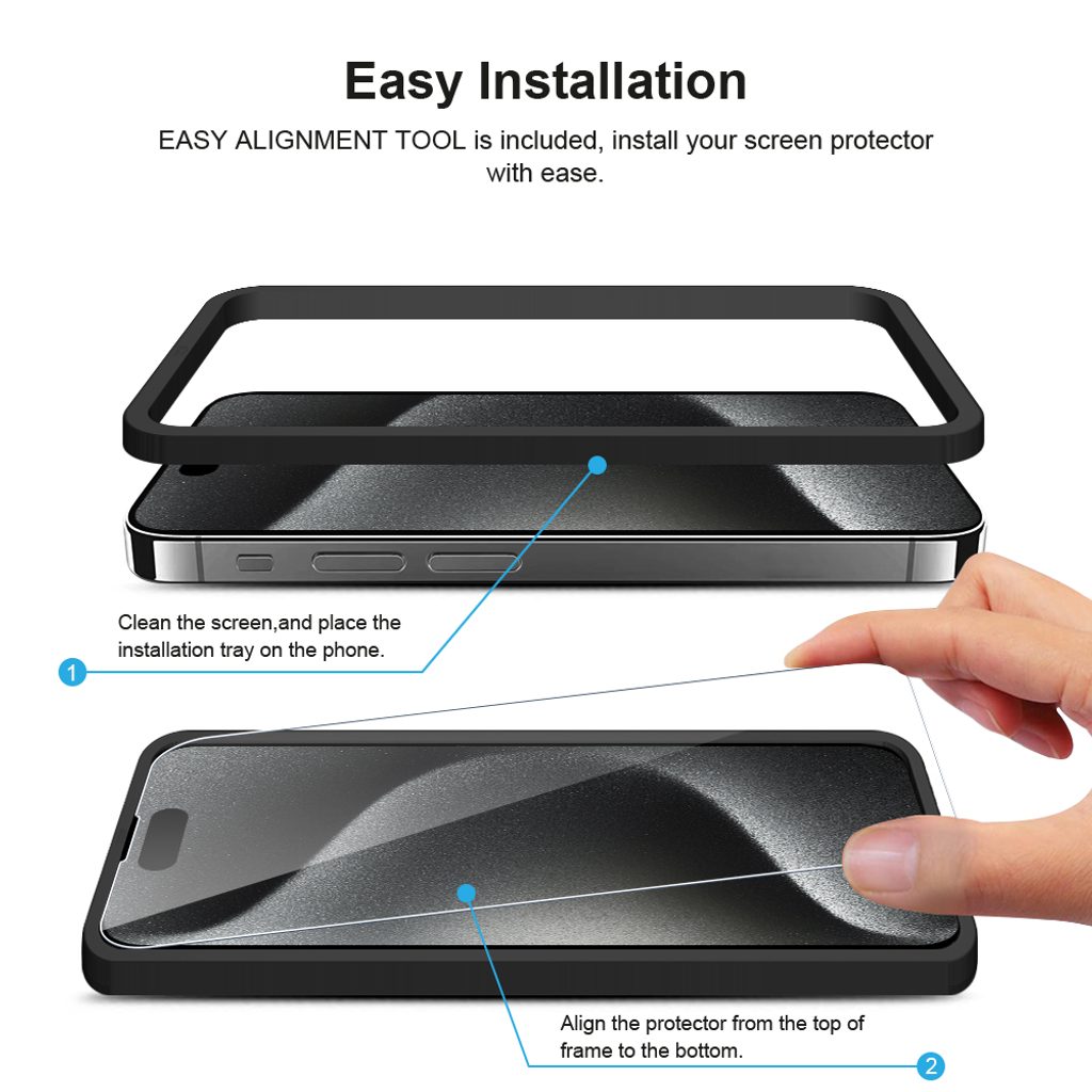 JP Long Pack Προστατευτικά Γυαλιά Οθόνης, Πακέτο 3 γυαλιών για iPhone 15 Pro με εφαρμογέα