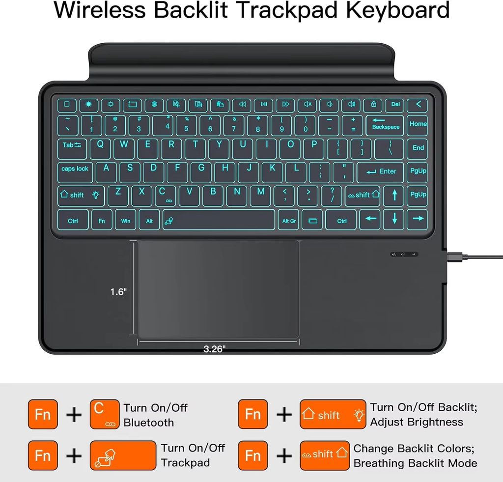 JP Μαγνητική θήκη με αποσπώμενο πληκτρολόγιο Bluetooth, touchpad, φωτισμό, περιστρεφόμενη βάση και θήκη για stylus αποτελεί μοντέρνα λύση για χρήστες που θέλουν να μετατρέψουν το tablet τους σε πλήρη εργασιακή συσκευή. Συνδυάζει προστατευτική θήκη, ασύρματο πληκτρολόγιο και βάση, παρέχοντας λειτουργικότητα παρόμοια με laptop, διατηρώντας παράλληλα την κινητικότητα και το ελαφρύ βάρος του tablet.
