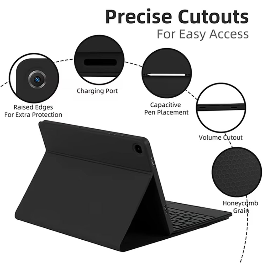 Η θήκη διαθέτει προστατευτικό TPU πίσω κάλυμμα, που βοηθά στην απορρόφηση κραδασμών και ταυτόχρονα διατηρεί την πρόσβαση σε όλα τα στοιχεία ελέγχου. Το πληκτρολόγιο είναι μαγνητικό και αποσπώμενο, οπότε μπορεί να χρησιμοποιηθεί ανεξάρτητα. Η σταθερή βάση επιτρέπει την άνετη ρύθμιση γωνίας οθόνης για εργασία και παρακολούθηση περιεχομένου.