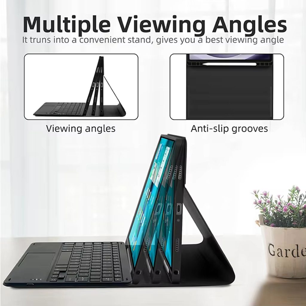 Μαγνητική θήκη με αποσπώμενο Bluetooth πληκτρολόγιο, touchpad, φωτισμό και βάση για stylus μετατρέπει το tablet σε πρακτικό εργαλείο εργασίας. Προσφέρει συνδυασμό προστασίας, λειτουργικότητας και άνεσης κατά τη χρήση. Χάρη στην ποιοτική κατασκευή και την υποστήριξη χειρονομιών αφής είναι κατάλληλη για γραφή, έλεγχο συστήματος, εργασία γραφείου και σπουδές.