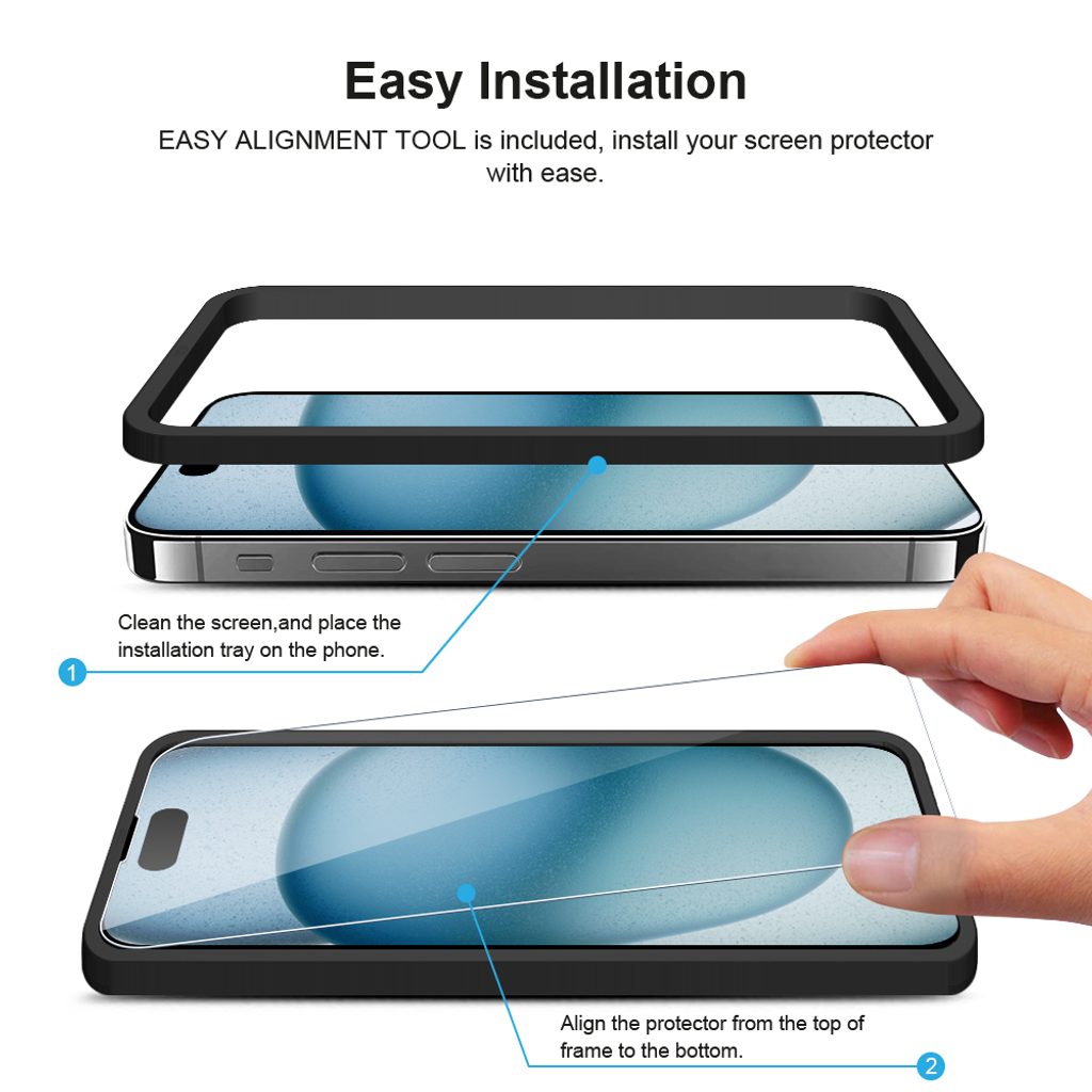 JP Mega Pack Προστατευτικών Γυαλιών, 3 γυαλιά για το τηλέφωνο με εφαρμογέα + 2 γυαλιά για τον φακό, iPhone 15 Plus