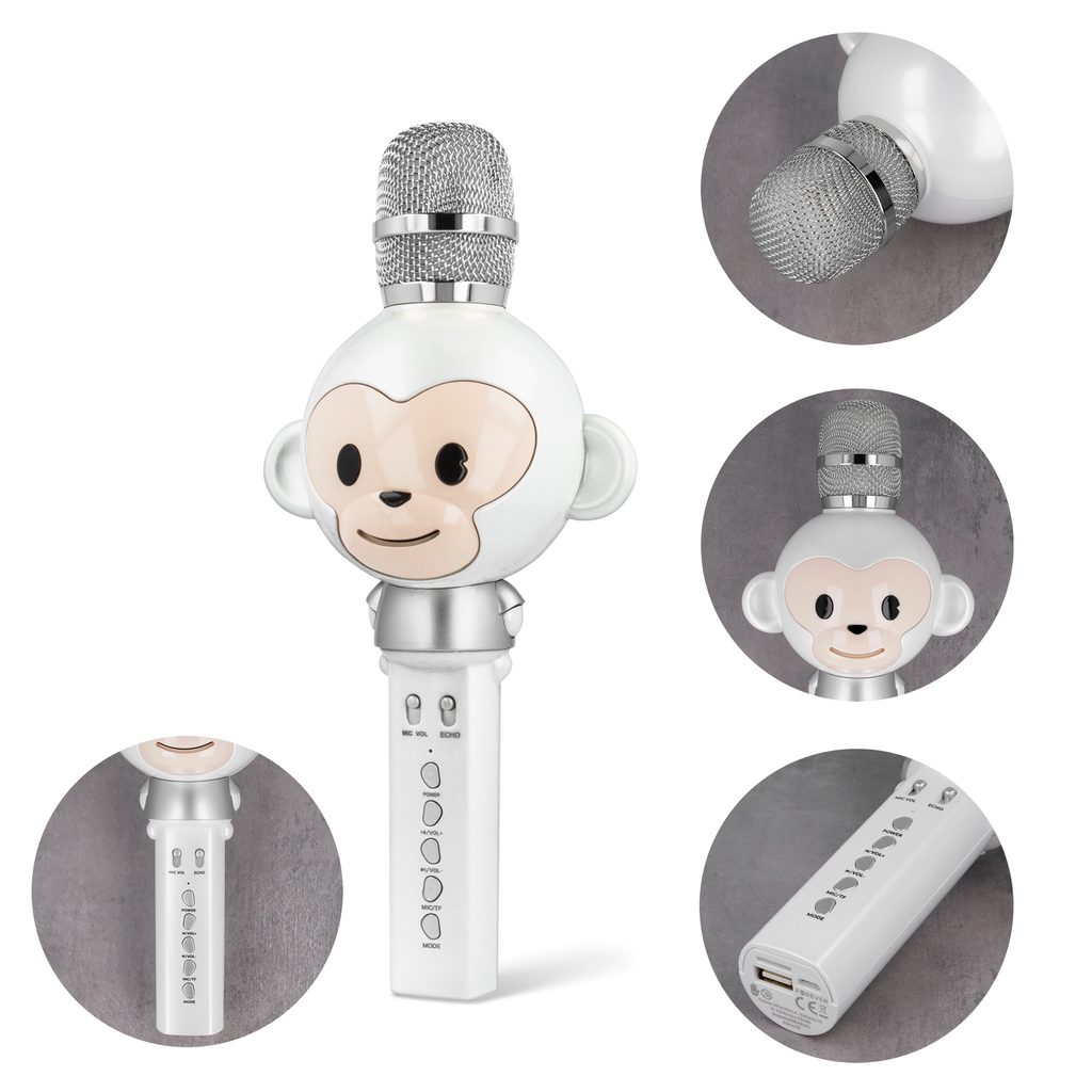 Αυτό το ασύρματο μικρόφωνο με ηχείο είναι μια μοναδική επιλογή για παιδιά που αγαπούν τη μουσική. Αυτή η εύκολη στη χρήση συσκευή σε σχήμα χαριτωμένου πιθήκου προσφέρει έως και 8 ώρες διασκέδασης. Το μικρόφωνο διατίθεται σε δύο χρωματικές παραλλαγές - μαύρο και λευκό.