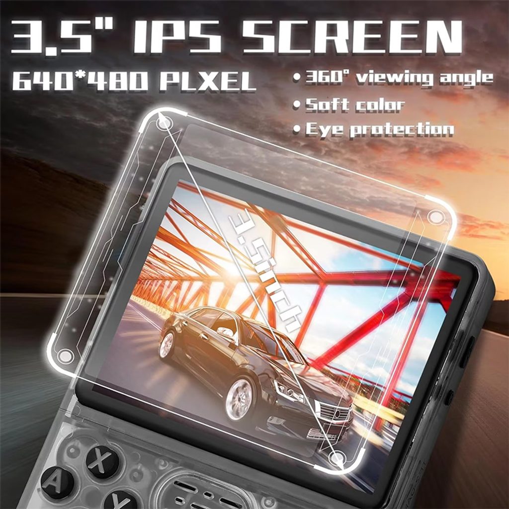 Η συμπαγής κατασκευή και η οθόνη IPS 3,5" με ανάλυση 640 × 480 px εξασφαλίζουν καθαρή εικόνα ακόμα και σε γρήγορες σκηνές. Χάρη στον επεξεργαστή RK3326 (1.5 GHz) και 1 GB RAM, η κονσόλα αντεπεξέρχεται ακόμα και σε απαιτητικές πλατφόρμες όπως το PlayStation 1 ή το Dreamcast.