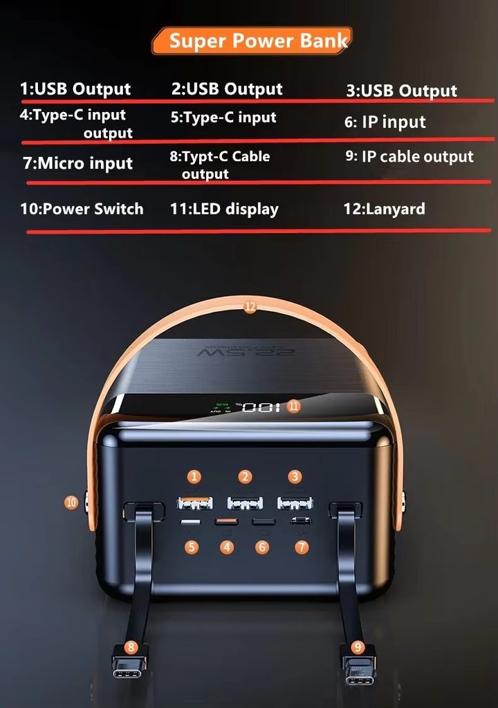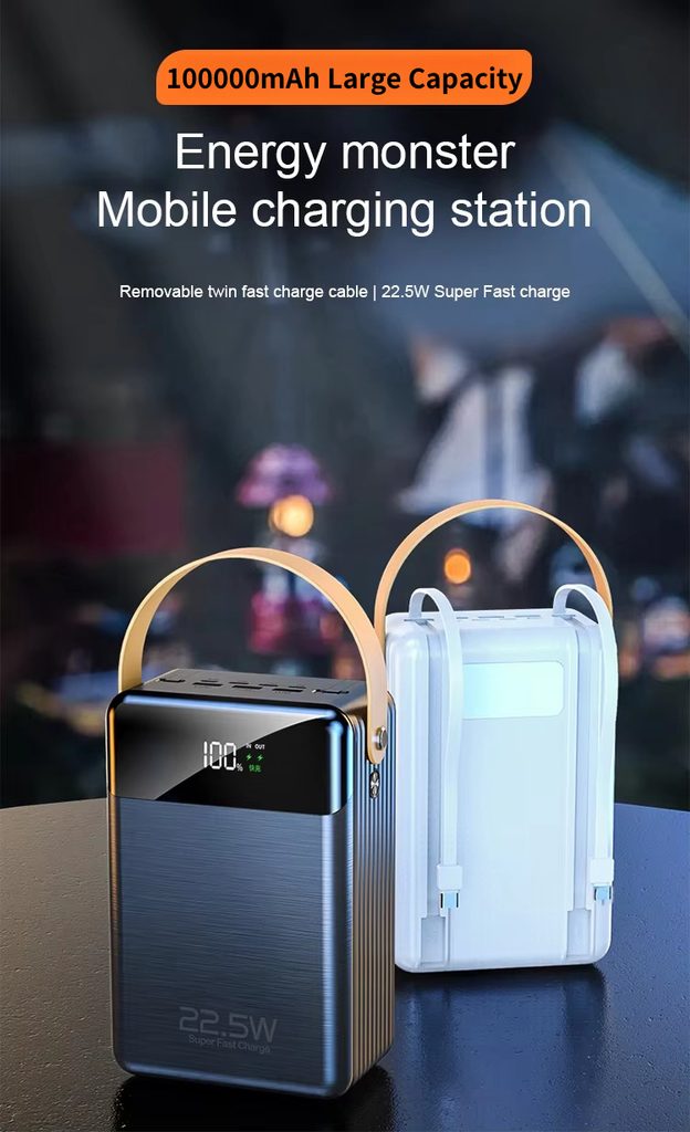 Ψάχνετε για ένα πραγματικά ισχυρό power bank που δεν θα σας απογοητεύσει ούτε για αρκετές μέρες μακριά από την πρίζα; Το Power Bank με χωρητικότητα απίστευτων 100.000 mAh είναι σχεδιασμένο για όλους όσους χρειάζονται μέγιστη αντοχή και αξιοπιστία – είτε για μεγάλα ταξίδια, κάμπινγκ, ή ως εφεδρική πηγή ενέργειας στο σπίτι και στη δουλειά. Χάρη στην υποστήριξη γρήγορης φόρτισης PD 22,5 W και την πλούσια συνδεσιμότητα θα γίνει ο απαραίτητος βοηθός σας.