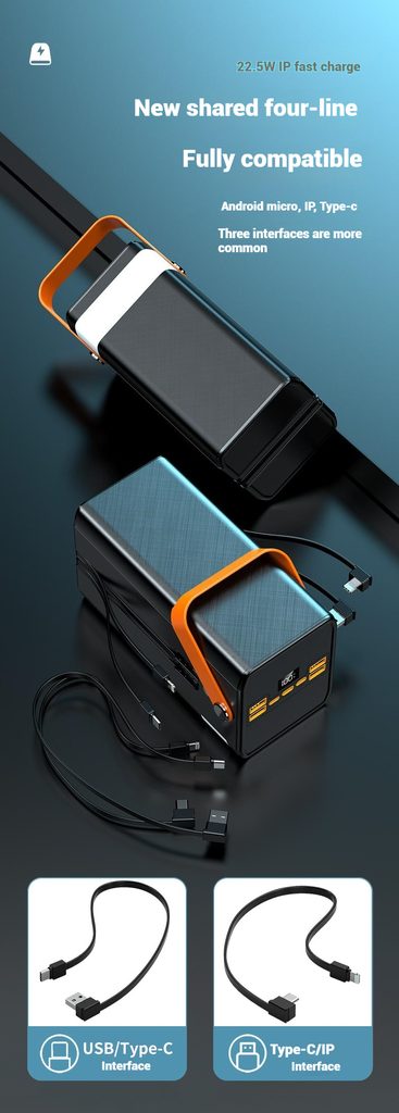 Αυτό το power bank υψηλής χωρητικότητας με χωρητικότητα 120.000 mAh είναι σχεδιασμένο για όσους χρειάζονται ενέργεια για μεγάλο χρονικό διάστημα χωρίς πρόσβαση σε πρίζα. Προσφέρει γρήγορη φόρτιση έως 22,5 W (PD), τέσσερις εξόδους συμπεριλαμβανομένου USB-C, δύο ενσωματωμένα καλώδια, ψηφιακή οθόνη και πρακτικά LED φώτα, τα οποία θα εκτιμήσετε κατά το camping και σε καταστάσεις έκτακτης ανάγκης.