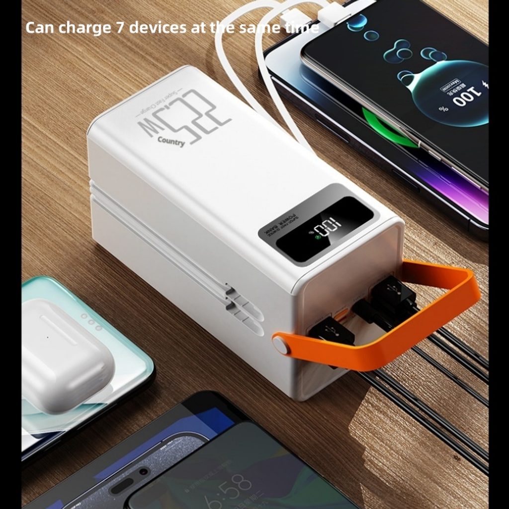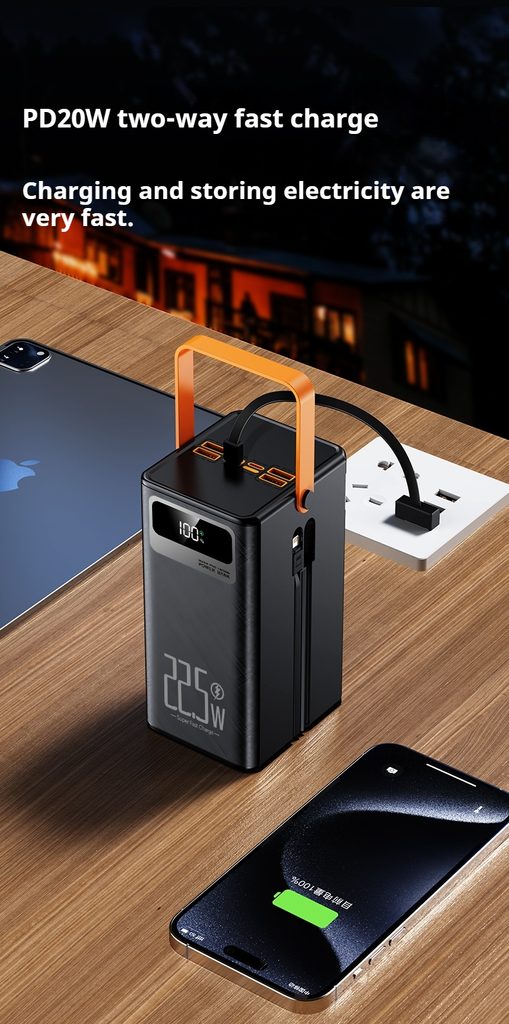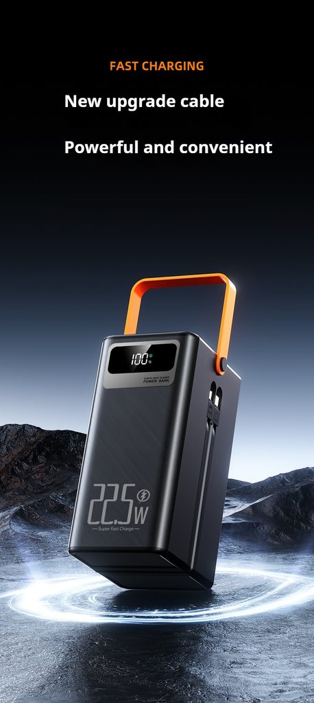 Ελαφρύ, συμπαγές και πάντα αρκετά ισχυρό – αυτό το power bank με χωρητικότητα 60.000 mAh είναι η ιδανική επιλογή για καθημερινή χρήση, εκδρομές ή σαββατοκύριακα μακριά από την πρίζα. Προσφέρει γρήγορη φόρτιση 22.5W (PD), τέσσερις εξόδους USB, δύο ενσωματωμένα καλώδια, ψηφιακή οθόνη και πρακτικό φως LED, που θα σας διευκολύνει τη ζωή σε κάθε κατάσταση.