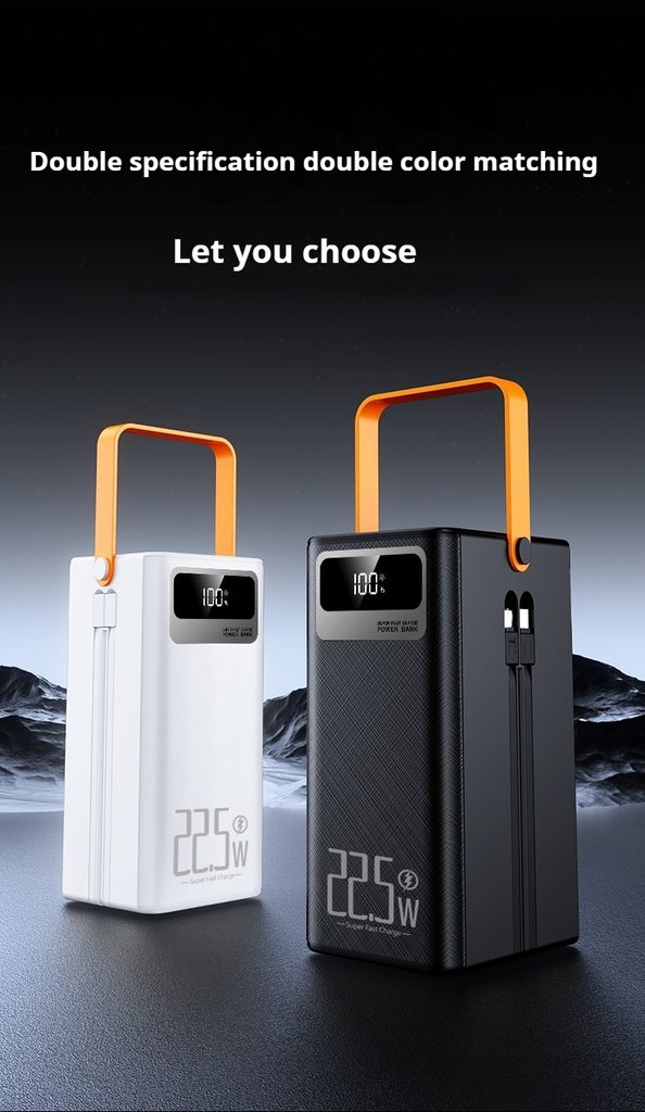 Ελαφρύ, συμπαγές και πάντα αρκετά ισχυρό – αυτό το power bank με χωρητικότητα 60.000 mAh είναι η ιδανική επιλογή για καθημερινή χρήση, εκδρομές ή σαββατοκύριακα μακριά από την πρίζα. Προσφέρει γρήγορη φόρτιση 22.5 W (PD), τέσσερις εξόδους USB, δύο ενσωματωμένα καλώδια, ψηφιακή οθόνη και πρακτικό LED φως, που θα σας διευκολύνει τη ζωή σε κάθε κατάσταση.