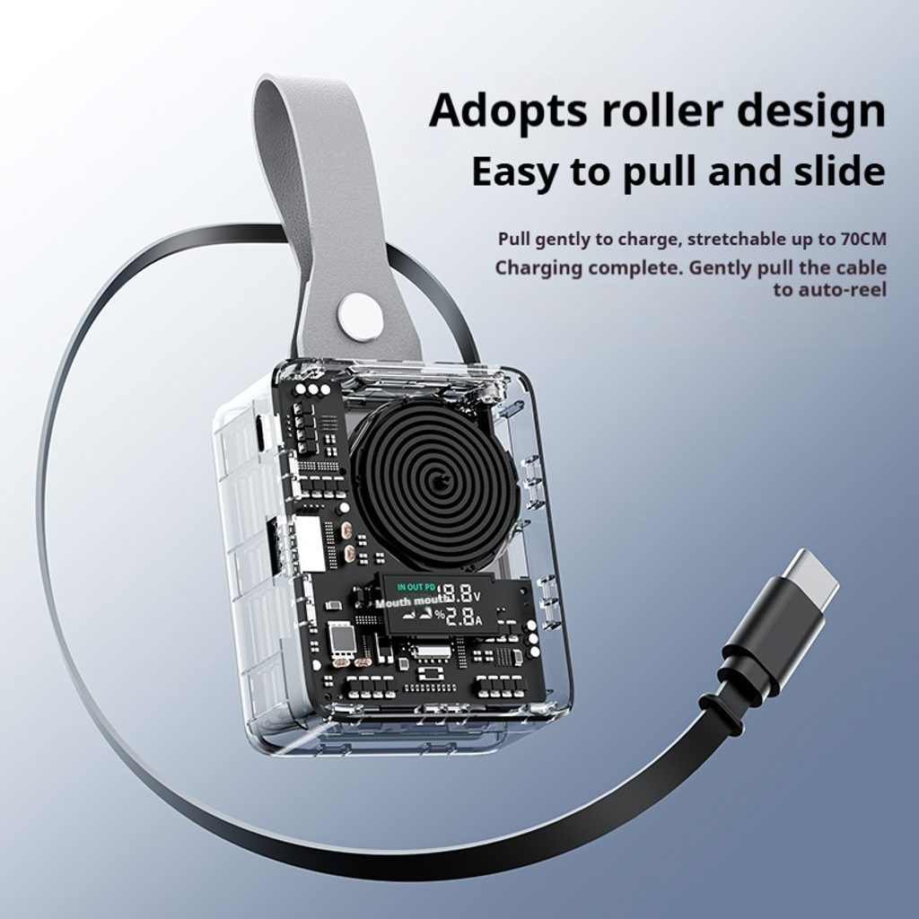 Αυτό το ισχυρό 65W PD powerbank με χωρητικότητα 20.000 mAh είναι σχεδιασμένο ως η ιδανική λύση για τη φόρτιση laptops, tablets, τηλεφώνων και άλλων ηλεκτρονικών συσκευών κατά τη διάρκεια των ταξιδιών. Χάρη στο ενσωματωμένο συρόμενο καλώδιο USB-C μήκους έως 70 cm έχετε αμέσως στη διάθεσή σας όλα όσα χρειάζεστε – χωρίς να κουβαλάτε δικά σας καλώδια και χωρίς ακαταστασία.