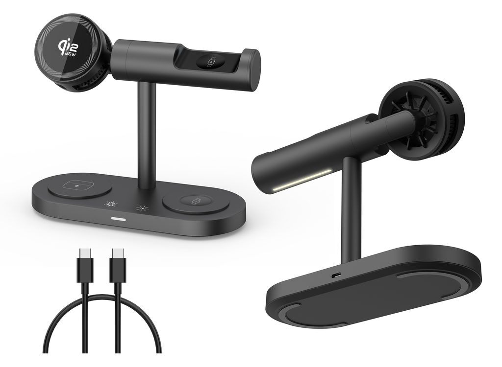 Σταθμός φόρτισης premium για απαιτητικούς χρήστες Apple. Κομψή λύση 5σε1, που συνδυάζει την πιο πρόσφατη τεχνολογία Qi2.2, 25W υπερταχεία ασύρματη φόρτιση, ενεργό ψύξη με TEC chip, μαγνητική στήριξη και πλήρως περιστρεφόμενη βάση.