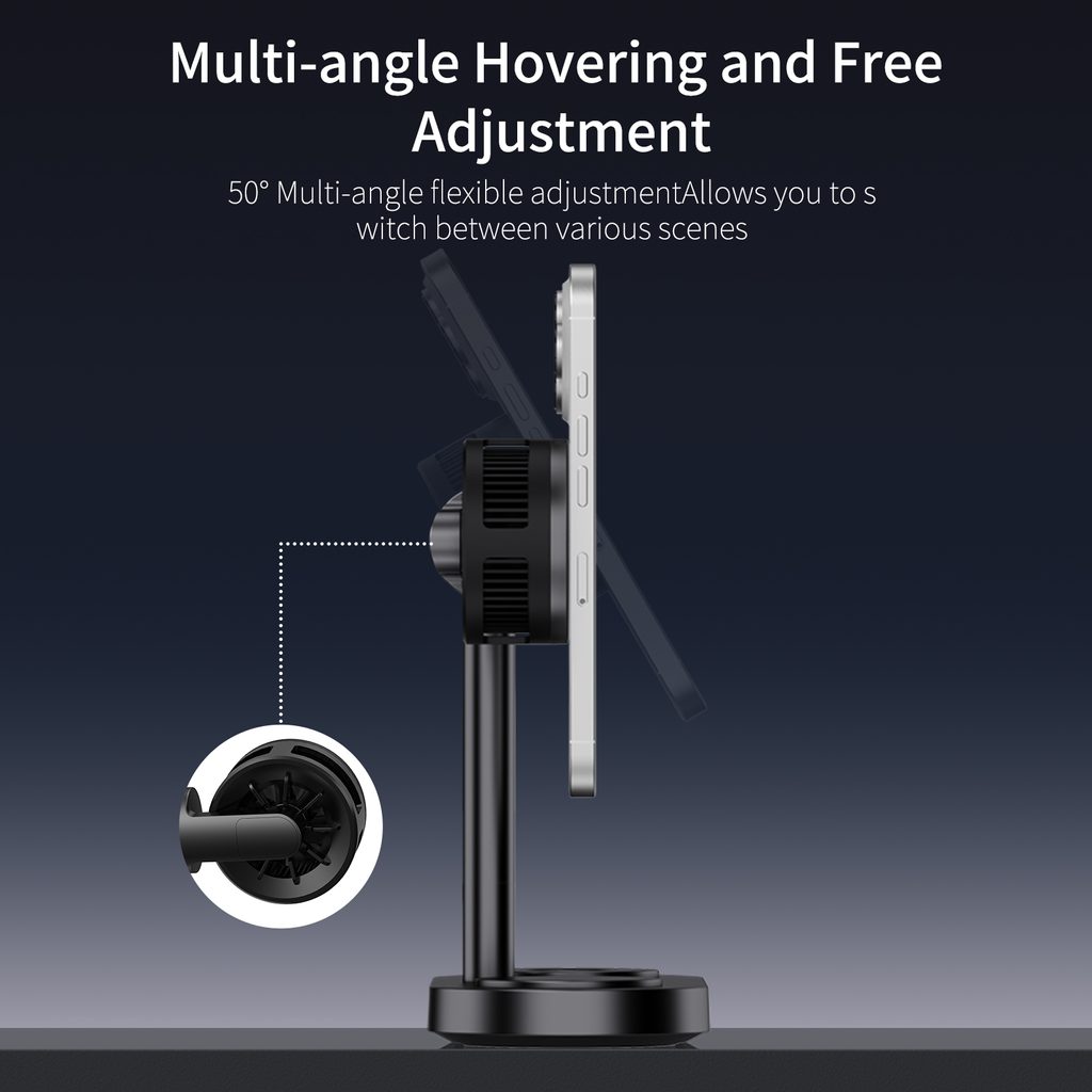 Πριμοδότηση σταθμός φόρτισης για απαιτητικούς χρήστες Apple. Κομψή λύση 5σε1, που συνδυάζει την πιο πρόσφατη τεχνολογία Qi2.2, 25W υπερταχεία ασύρματη φόρτιση, ενεργό ψύξη με TEC chip, μαγνητική στήριξη και πλήρως περιστρεφόμενη βάση.