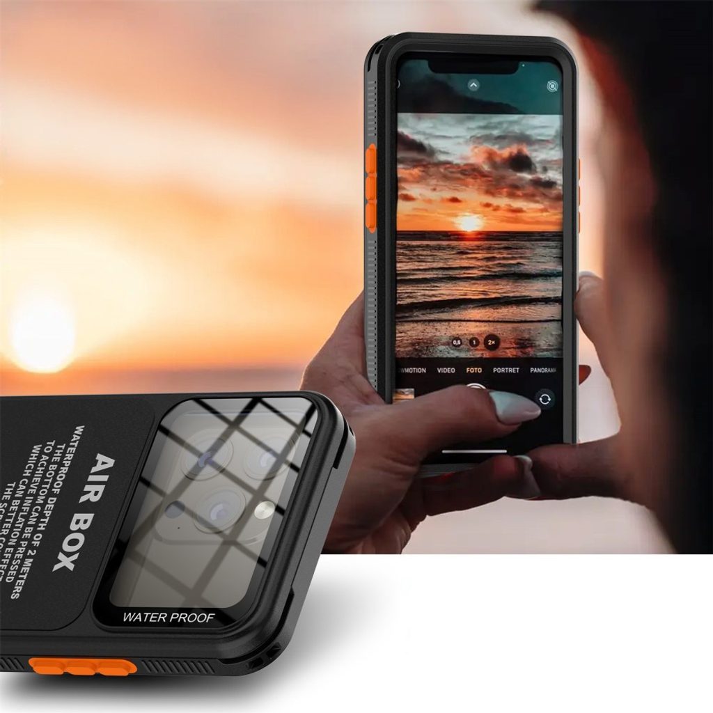 Αγαπάτε την περιπέτεια; Με τη θήκη ShellBox μπορείτε να πάρετε το τηλέφωνό σας παντού, χωρίς να φοβάστε το νερό ή τα χτυπήματα. Χάρη στο καινοτόμο ερμητικό σύστημα στεγανοποίησης με πιστοποίηση IP68, η συσκευή σας αντέχει βυθισμένη έως 2 μέτρα για 30 λεπτά.
