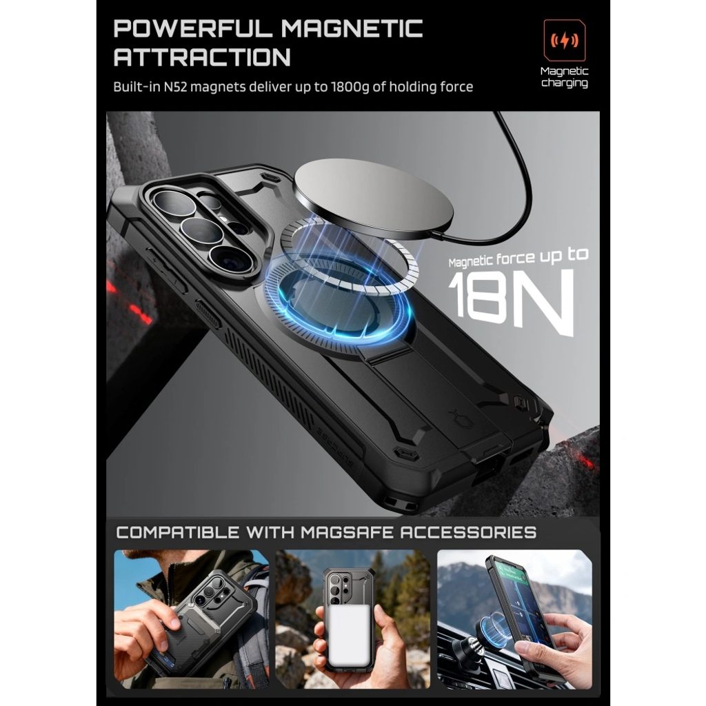 Supcase Unicorn Beetle Pro Mag MagSafe είναι μια ανθεκτική θήκη πλήρους προστασίας σχεδιασμένη για μέγιστη προστασία του τηλεφώνου ακόμα και σε απαιτητική χρήση. Συνδυάζει θωρακισμένη κατασκευή που πληροί το στρατιωτικό πρότυπο Mil-Grade με πλήρη συμβατότητα τεχνολογίας MagSafe και πρακτικά χαρακτηριστικά για καθημερινή άνεση.