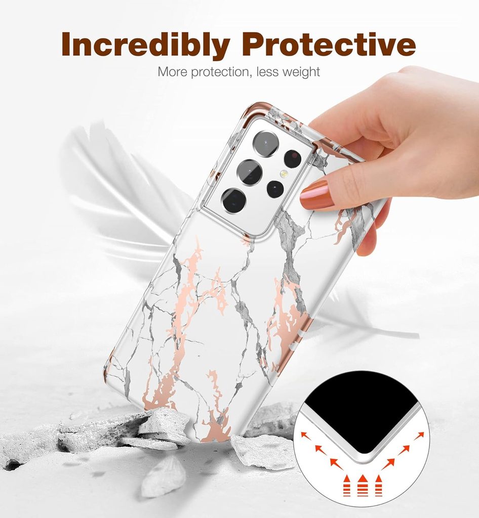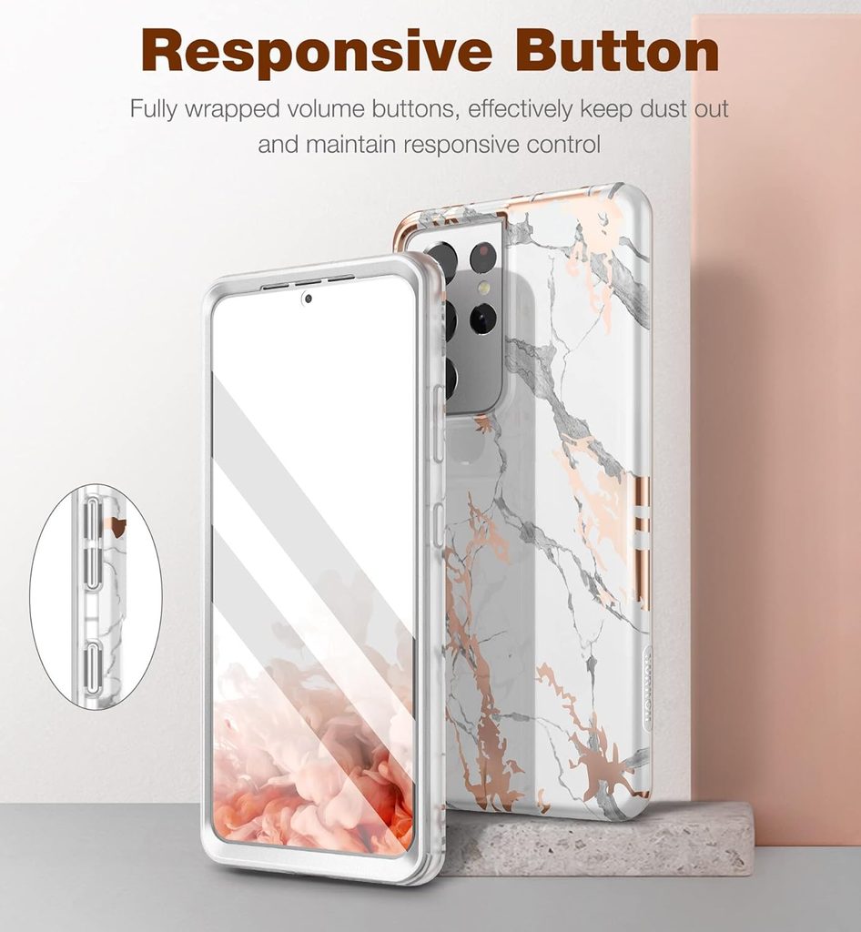 Σχεδίαση δύο τμημάτων με μπροστινό και πίσω κάλυμμα. Το μπροστινό κάλυμμα περιλαμβάνει προστατευτικό οθόνης ευαίσθητο στην αφή και το πίσω κάλυμμα είναι επενδυμένο με ανθεκτικό υλικό TPU.