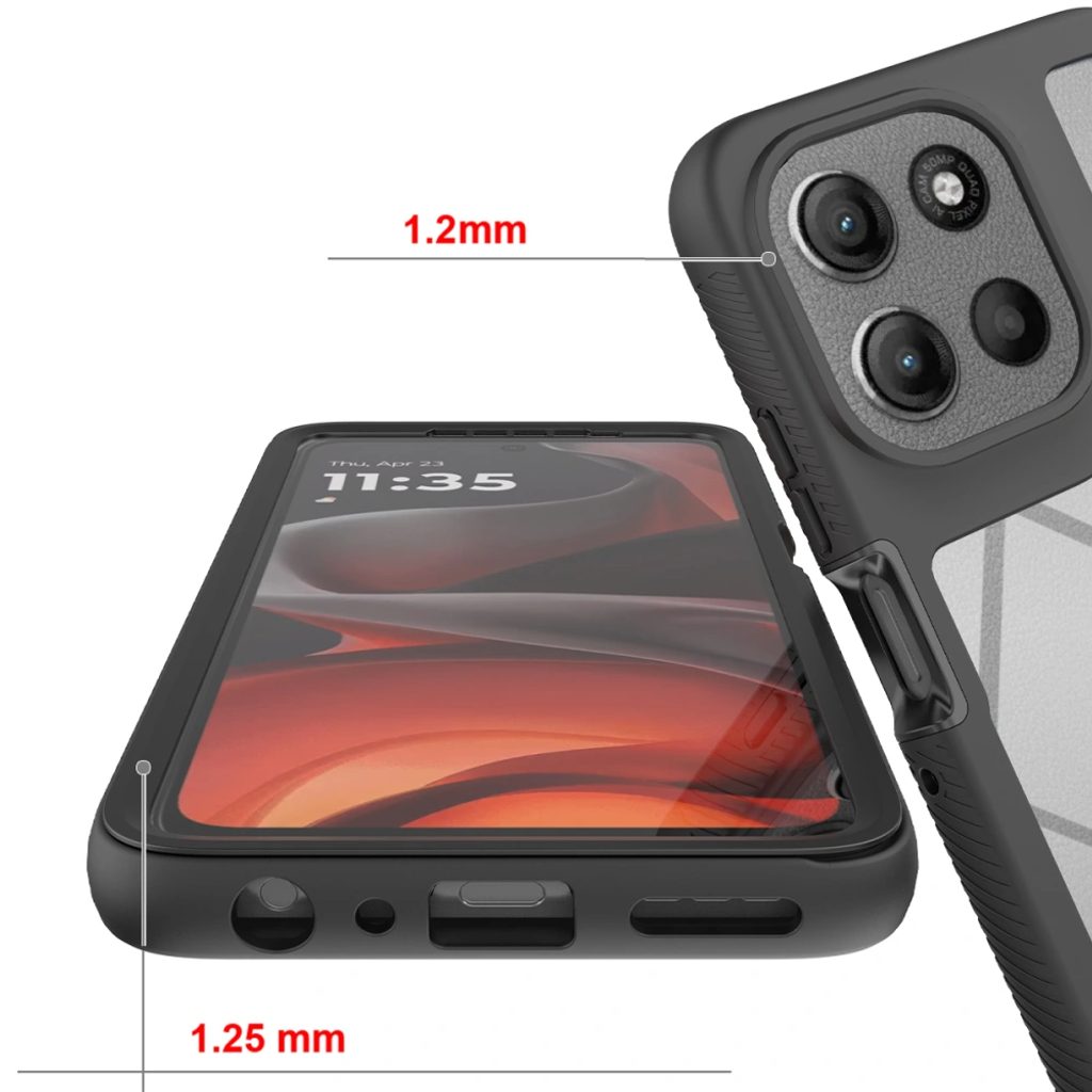 Το μπροστινό μέρος αποτελείται από πλαίσιο που περιβάλλει τις άκρες του τηλεφώνου με ενσωματωμένο υβριδικό γυαλί σκληρότητας 5H, ενώ το πλευρικό και πίσω μέρος αποτελούν τον δομικό σκελετό. Το σύνολο είναι κατασκευασμένο από μείγμα μαλακού θερμοπλαστικού και σκληρυμένης επίστρωσης πολυκαρβονικού. Και τα δύο μέρη συναρμολογούνται μαζί χάρη στην κατασκευή "Snap-On".