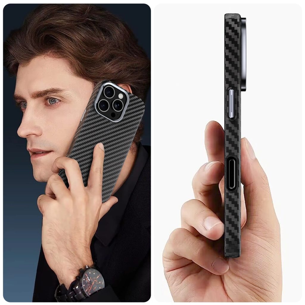 Κομψή και ανθεκτική θήκη σχεδιασμένη για μέγιστη προστασία και άνεση. Κατασκευασμένη από ποιοτικό πολυκαρβονικό υλικό με ανθρακική υφή, προστατεύει το τηλέφωνο από γρατζουνιές και κρούσεις. Το στιλάτο σχέδιο με συμβατότητα MagSafe το καθιστά ιδανική επιλογή για καθημερινή χρήση.