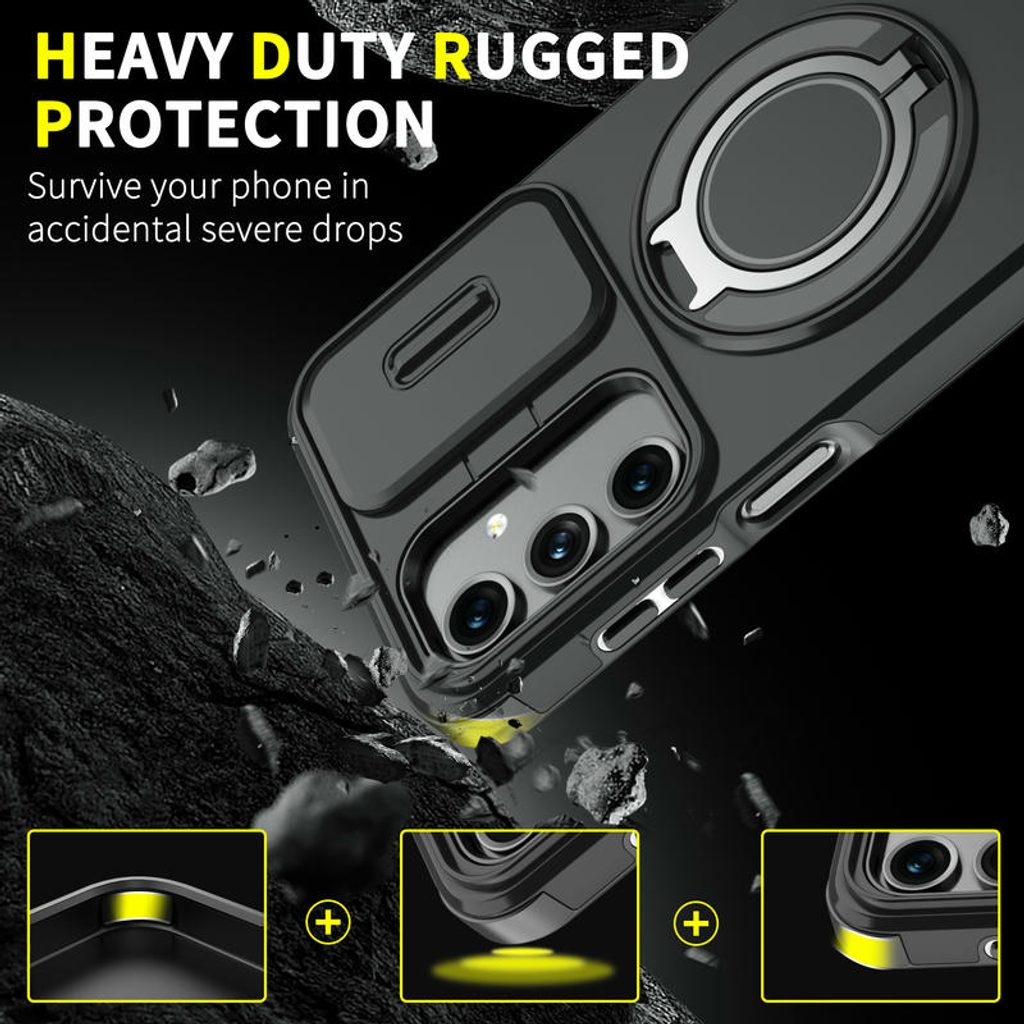 • Πρακτικότητα σε πρώτο πλάνο: Το συρόμενο κάλυμμα κάμερας και η βάση στήριξης κάνουν αυτή τη θήκη ιδανικό σύντροφο όχι μόνο για ταξίδια, αλλά και για καθημερινή χρήση.