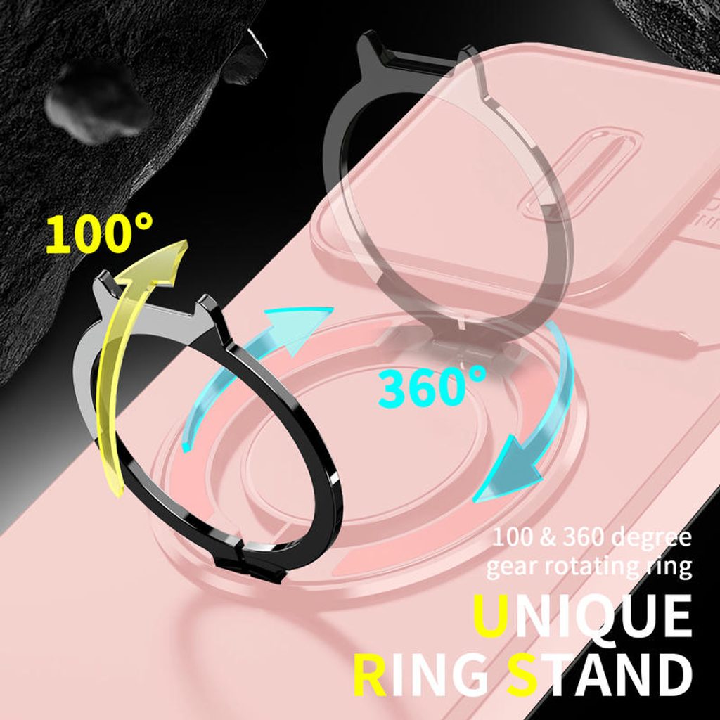 Χάρη στον μεταλλικό δακτύλιο στο πίσω μέρος της θήκης, μπορείτε να στηρίξετε άνετα το τηλέφωνό σας σε οποιαδήποτε επιφάνεια. Παρακολουθήστε βίντεο, κλήσεις ή εργαστείτε χωρίς να χρειάζεται να κρατάτε το τηλέφωνο στο χέρι σας. Η βάση περιστρέφεται κατά 360 μοίρες, προσφέροντας μέγιστη ευελιξία.