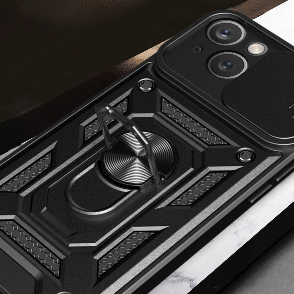 Η θήκη Hybrid Armor Camshield κατασκευάζεται από θερμοπλαστικό και ανθεκτικό υλικό που μοιάζει με ατσάλι. Το κάλυμμα είναι προσαρμοσμένο στο τηλέφωνο, προστατεύοντας τέλεια από πτώσεις ή γρατζουνιές (όπως από κλειδιά στην τσέπη). Η θήκη διαθέτει συρόμενο κάλυμμα πίσω κάμερας. Με αυτόν τον τρόπο, το γυαλί της κάμερας προστατεύεται από γρατζουνιές.